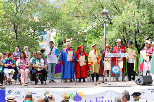 Samedi à 10 heures, le cortège formé par les 22 confréries invitées, s’ébranla vers la place du Général de Gaulle où se déroula le chapitre des confréries avant la coupure traditionnelle du ruban qui ouvrait officiellement le 27eme épisode de la fête de la Figue et le marché riche de 130 stands.