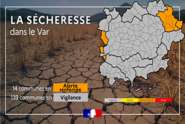 Les zones Arc Amont, Huveaune amont, Siagne amont et Siagne Aval restent en alerte renforcée sécheresse (ORANGE) .