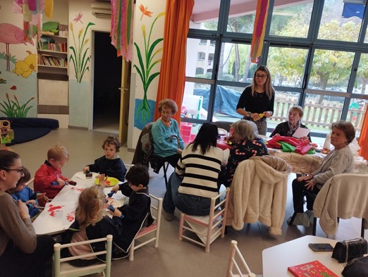 Ce mois-ci, la crèche a organisé pour le plus grand bonheur des grands et des petits, un atelier intergénérationnel avec quelques résidentes de la maison de retraite FELIX PEY.