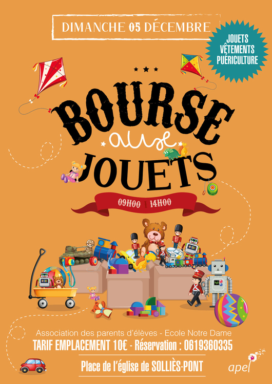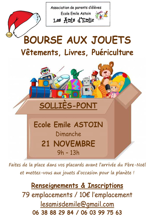 L'association des parents d'élèves de l'Ecole Emile ASTOIN organise une bourse aux jouets, livres vêtements...dans la cour de l'école Emile Astoin à Solliès-Pont