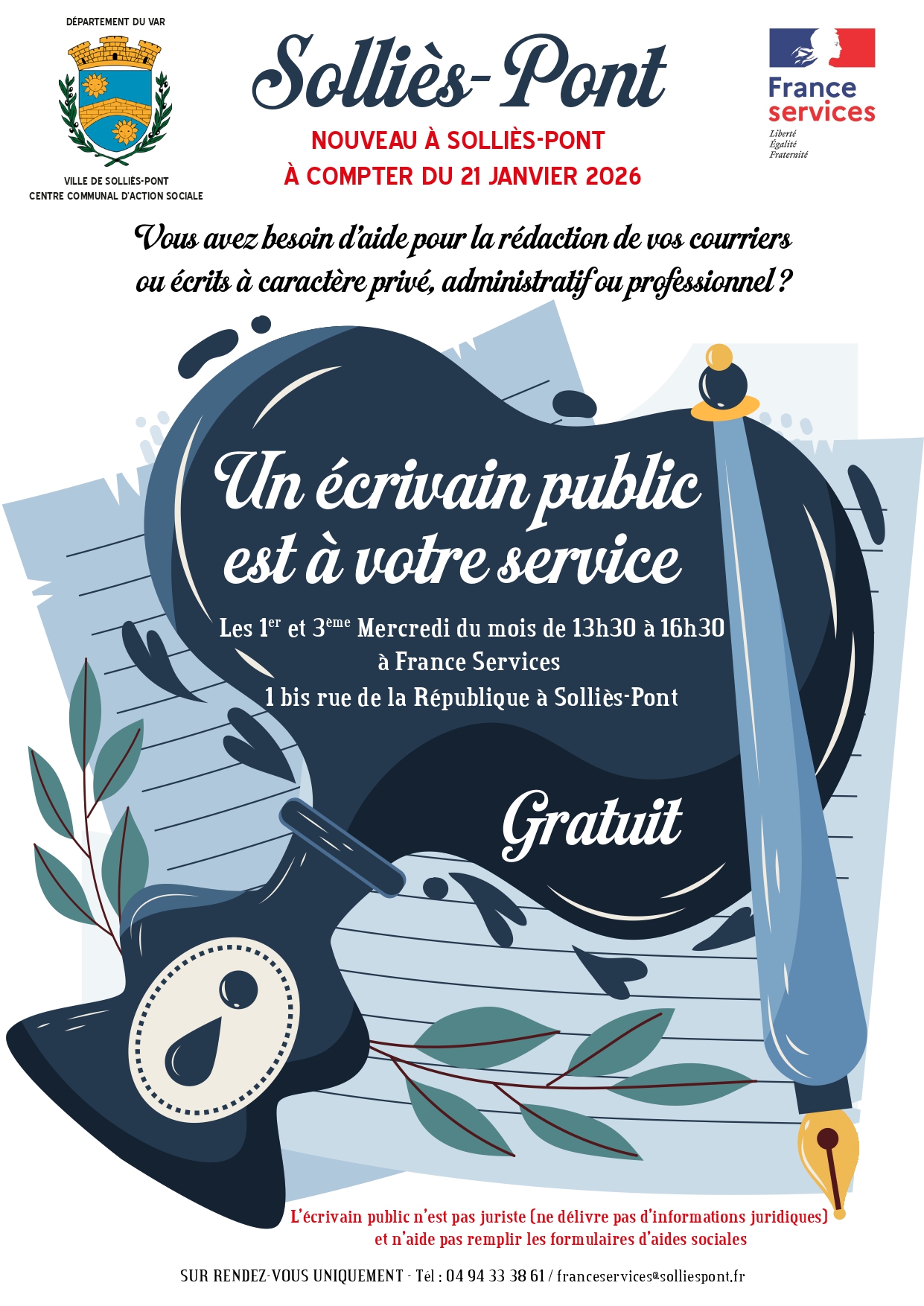 Tél : 04 94 33 38 61 / Mail : franceservices@solliespont.fr
