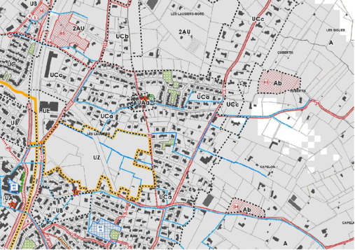 - Trois bassins sont situés en zone 2AU (à urbaniser) et en zone A (agricole) au PLU. Afin de permettre leur réalisation, il est nécessaire de réviser le PLU pour créer les emplacements réservés nos 63, 64 et 65.