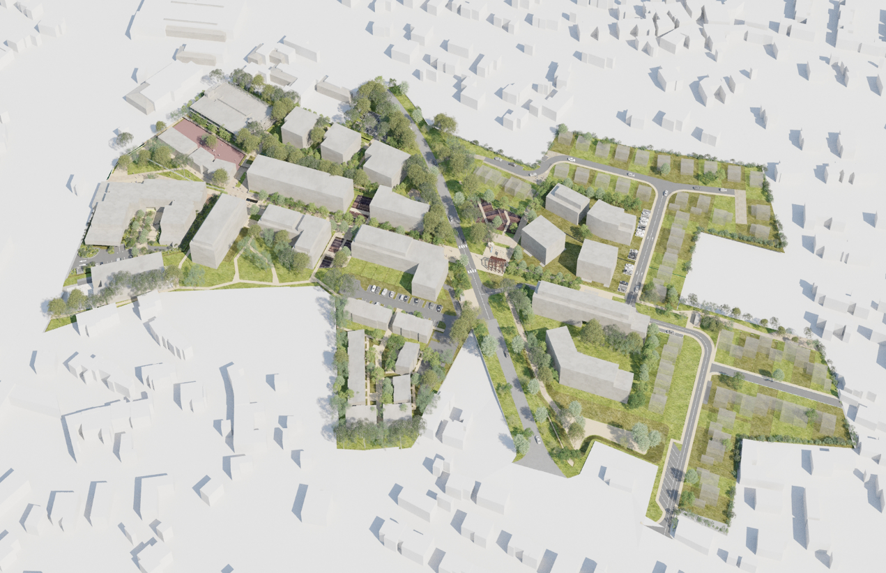 - Des formes d’habitat diversifiées (65% de collectifs, 10% de semi-collectifs, 10% d’individuels groupés et 15% de lots à bâtir), associées à une mixité générationnelle et sociale (50% de logements sociaux, un groupe scolaire, un EHPAD, une crèche et une maison des habitants),